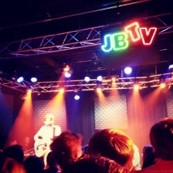 I think I first heard them via Spotify on my Twin Atlantic radio station (another really great Scottish alt rock band), and kept them stored away in the back of my mind. I get these random emails from this company called Do312 that sends me info about random bar events and concerts and things going on in Chicago. So on Friday, I was browsing through emails, and saw a headline to enter to win free passes to a live studio recording for Biffy Clyro on Sunday. I at least recognized the band's name, and I had nothing planned, so I entered. [Sidenote: I never win contests of any kind.] Long story short, I got an email late Saturday afternoon informing me that I won! I wasn't exactly sure what "live studio taping" meant exactly, but after a little research, I learned that the show was being put on by JBTV Studios - "America's longest running music television show, showcasing new music and breaking artists for over 27 years". Pretty cool, right? So basically, there were maybe 100 people who showed up at the studio (near Merchandise Mart) and we got to walk through this awesome room filled with signed posters, guitars, records from all these famous artists and bands, and then into this acoustified (?) room with a small stage and cameras. Unfortunately, I wasn't able to get up front, so I had an interesting time trying to see as usual, but I'm looking forward to catching the episode on JBTV (check out these fan videos (Little Soldiers, Stingin' Belle) on YouTube in the meantime - thanks to shiner1tx for posting it!)