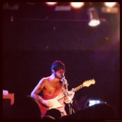 "Mon the Biff!" is a Biffy Clyro cult chant that fans yell when waiting for the show to start. After an extremely long sound-check (in between sets? it was weird), Biffy fucking Clyro finally took the stage. And guess what, they came out with no shirts on! haha it was definitely a sight to see and I was a little surprised at how cliche rock-star it was...but I soon realized why. Simon Neil sweats. A LOT. Like, he was dripping rivers of sweat. After just a few songs, his hair looked like he had just gotten out of the shower, and needless to say, he probably drenched the front row with all of his head banging. Ha, so gross! But luckily (or was it unlucky?), I wasn't in the line of fire.